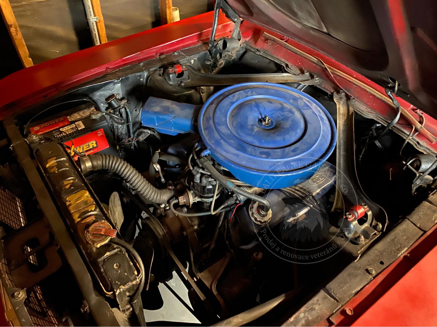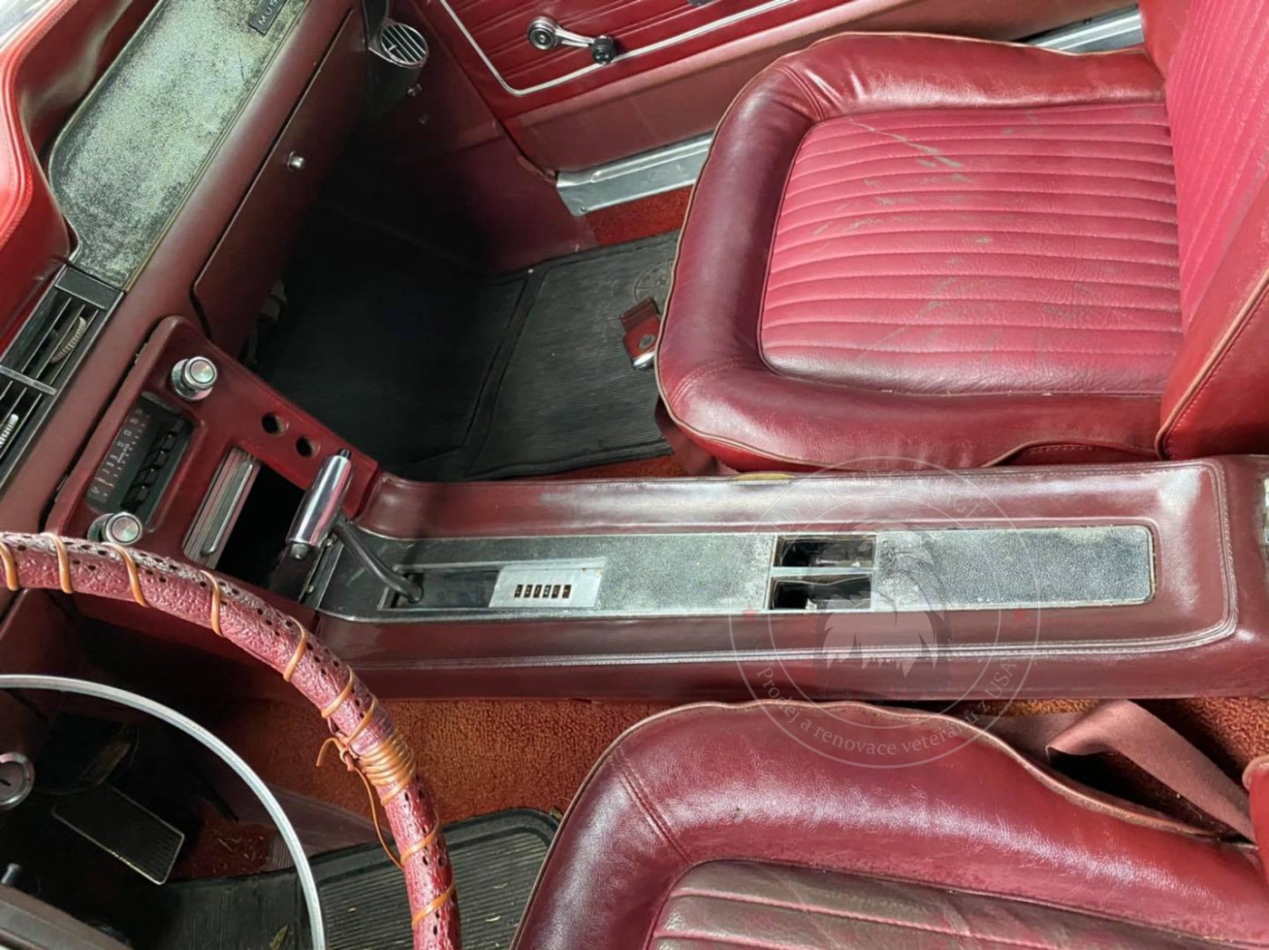 Díváte se na Ford Mustang v poměrně zachovalém stavu. Vůz jezdí, řadí, brzdí. Interiér je původní. Vůz bude pro majitele krásným svezením. Tento veterán je klasikou a miláčkem všech příznivců amerických vozů a kdo má srdce na správném místě, vždycky se za ním rád ohlédne. Kombinace barev exterieru a interiéru je velmi zajímavá. Vinyl na střeše je třeba vyměnit, ale střecha jako taková není zkorodovaná. Koroze je ve standardních místech na podbězích, ale nikoli v neopravitelném rozsahu. Vůz je vhodným kandidátem na renovaci. Pro vážné zájemce máme video.